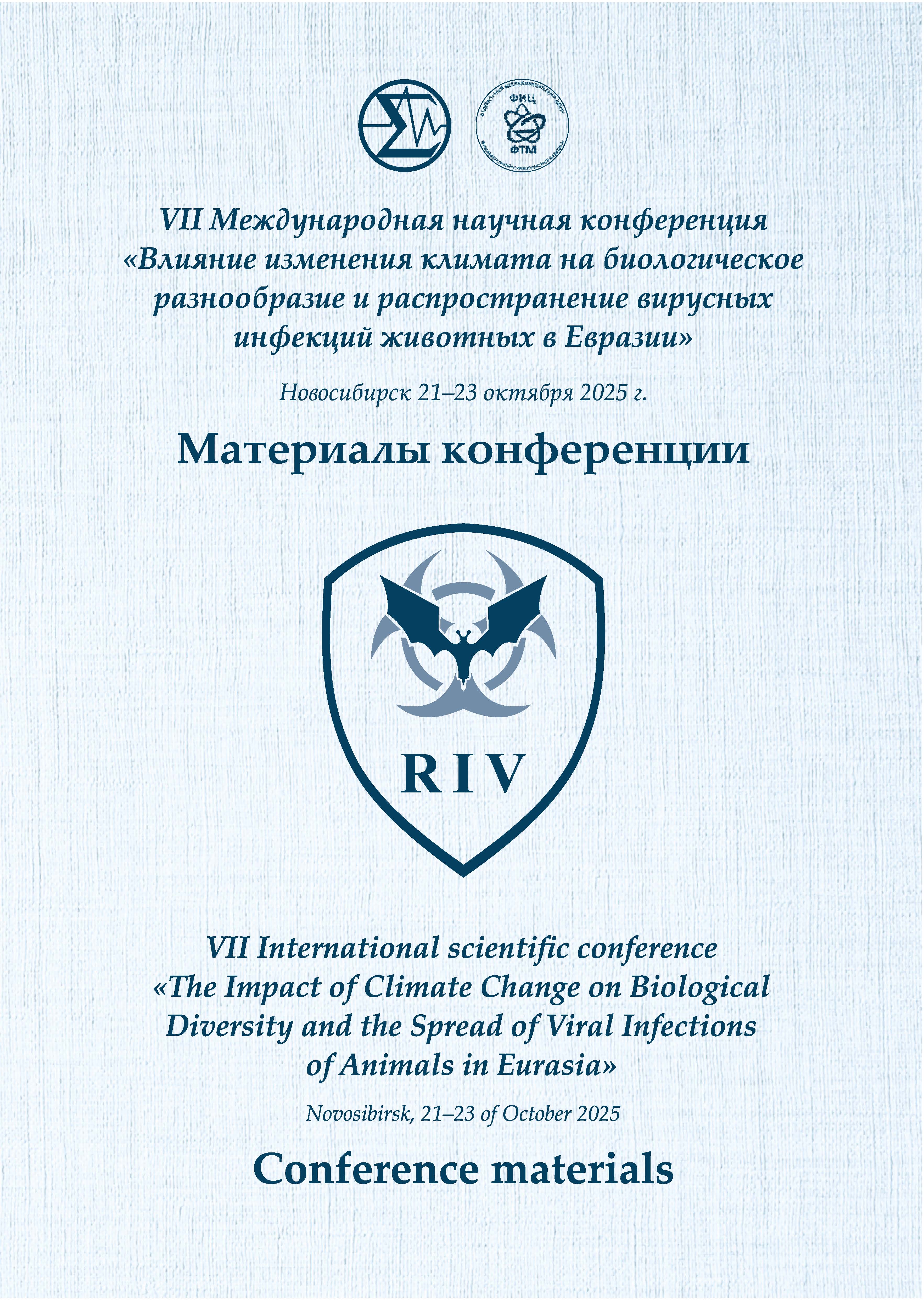VII Международная научная конференция «Влияние изменения климата на биологическое разнообразие и распространение вирусных инфекций животных в Евразии»: материалы конференции (21 – 23 октября 2025 года, г. Новосибирск)