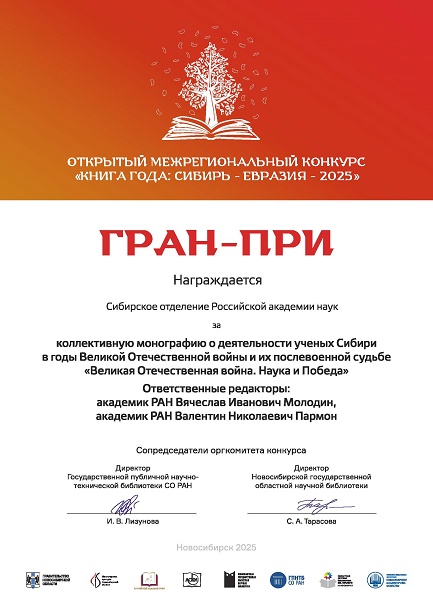"Великая Отечественная война. Наука и Победа". - Новосибирск: СО РАН, 2025 г., ISBN 978-5-6052502-4-1.