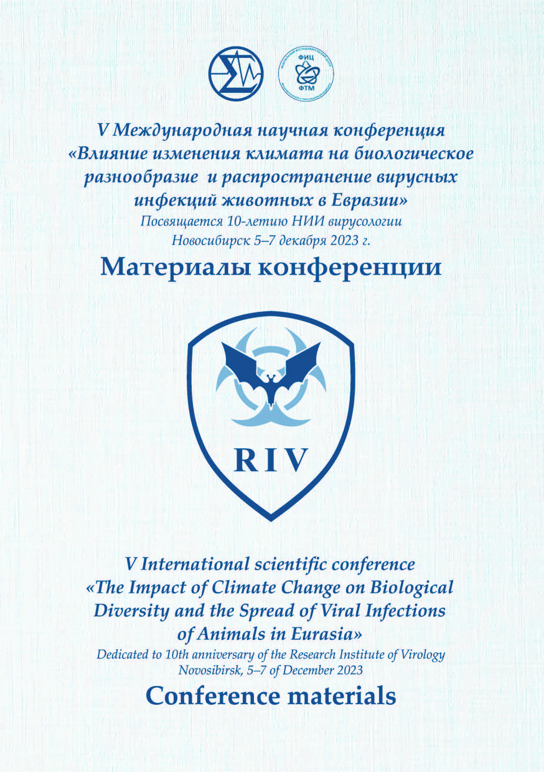 V Международная научная конференция «Влияние изменения климата на биологическое разнообразие и распространение вирусных инфекций животных в Евразии»: Посвящается 10-летию НИИ Вирусологии: материалы конференции (5-7 декабря 2023 года, г. Новосибирск)