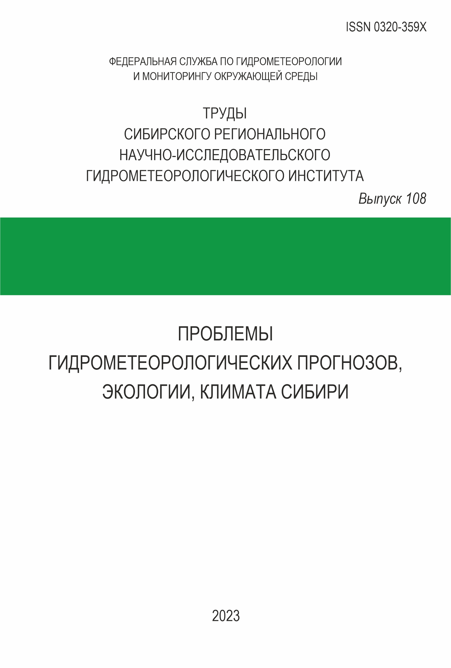 Труды Сибирского регионального научно-исследовательского гидрометеорологического института. Вып. 108: Проблемы гидрометеорологических прогнозов, экологии, климата Сибири